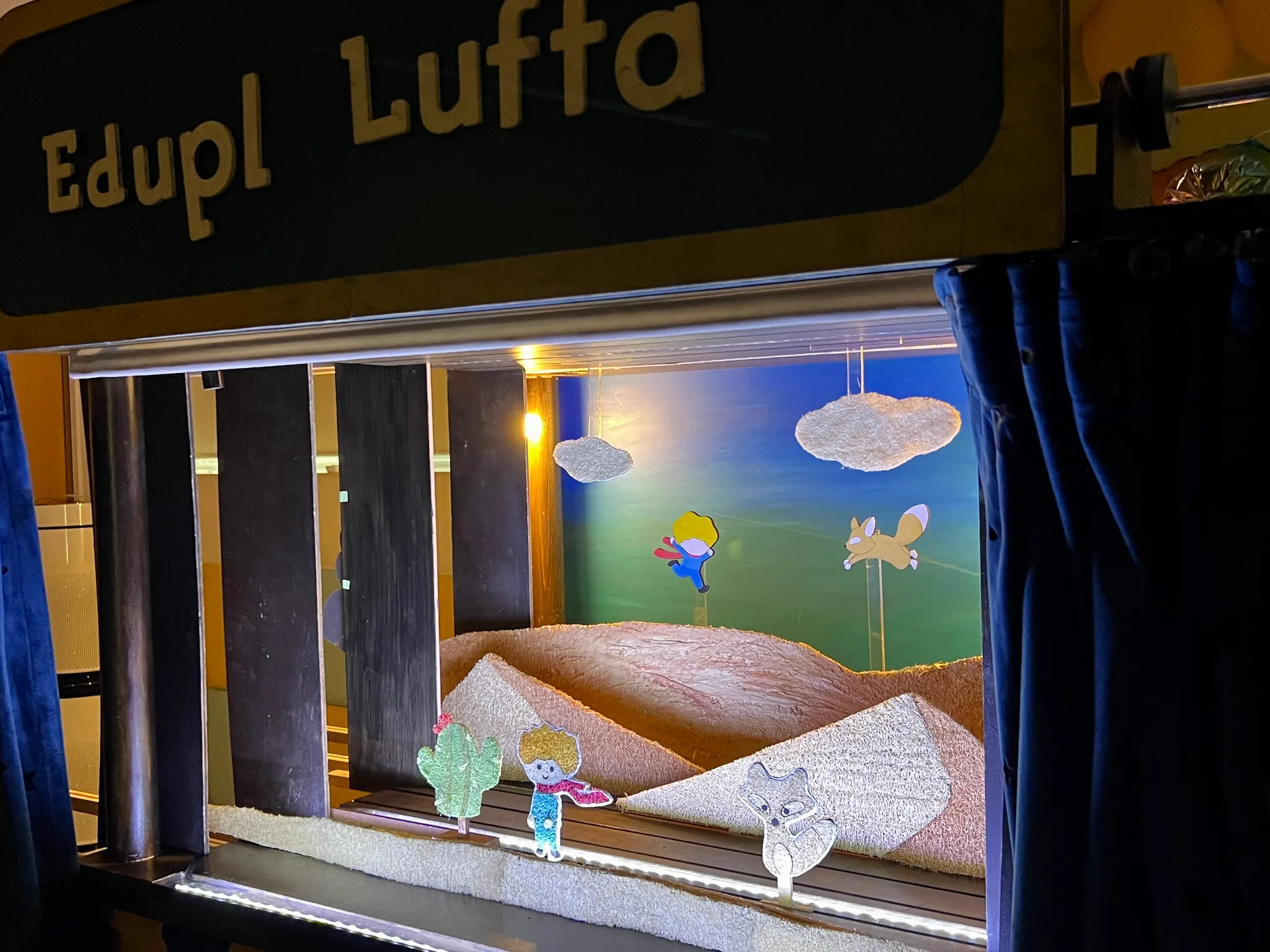 에듀플 루파는 ‘수세미’라는 재료가 가진 색다른 질감과 유연성을 활용하여 평면 인형을 제작하였고, 이를 다이내믹하게 연출할 수 있는 독자적인 ‘슬라이드형 무대(루파 씨어터)’를 개발하여 어디서도 볼 수 없는 독특한 공연으로 완성하였다.